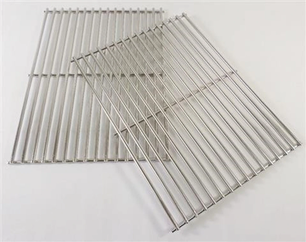 Set of two, single level stainless steel 1/4″ rod cooking grates. Each section measures 16-1/2″ front to back X 12-3/4″ wide, for a total set width of 25-1/2″. Fits Broilmaster H3X model years 2015 and newer as well as many other brands/models.