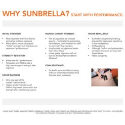 - Outdoor perfromance Sunbrella fabric for longevity in outdoor elements
