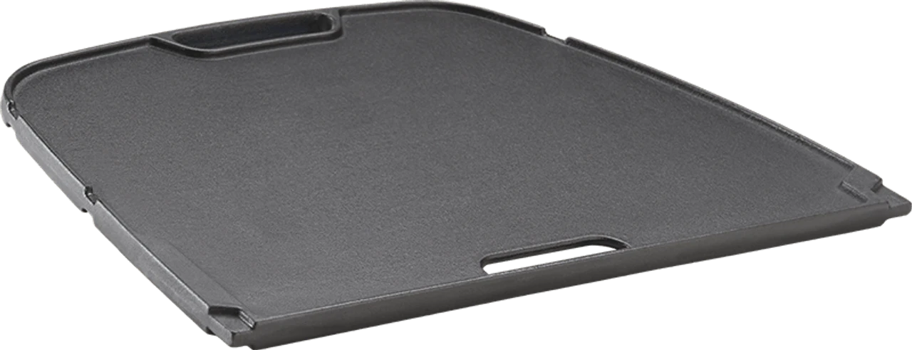 Napoleon’s new TravelQâ„¢ Portable Gas Grill is a wildly versatile grilling machine. Take your portable grilling to an even higher next level with the ReveRSIBle Cast Iron Griddle. Specially designed to fit the unique shape of our TravelQâ„¢, this Cast Iron Griddle seasons up just like the cooking grids and your favorite frying pan. Imagine being the star of the tailgate party, or going camping and only needing one cooking machine for all your eating needs. The TravelQâ„¢ is there for you, and with the Cast Iron Griddle, you can do even more. Grill up some burgers while you caramelize some onions for on top, serve up the perfect breakfast, and even serve up hot sandwiches “Panini” style. This handy Cast Iron Griddle has a convenient carry and storage handle, and convenient little holes to allow grease to drain away from your food for the crispiest bacon, and most succulent sausages. Get the ReveRSIBle Cast Iron Griddle to take your already amazing TravelQâ„¢ to the next level.