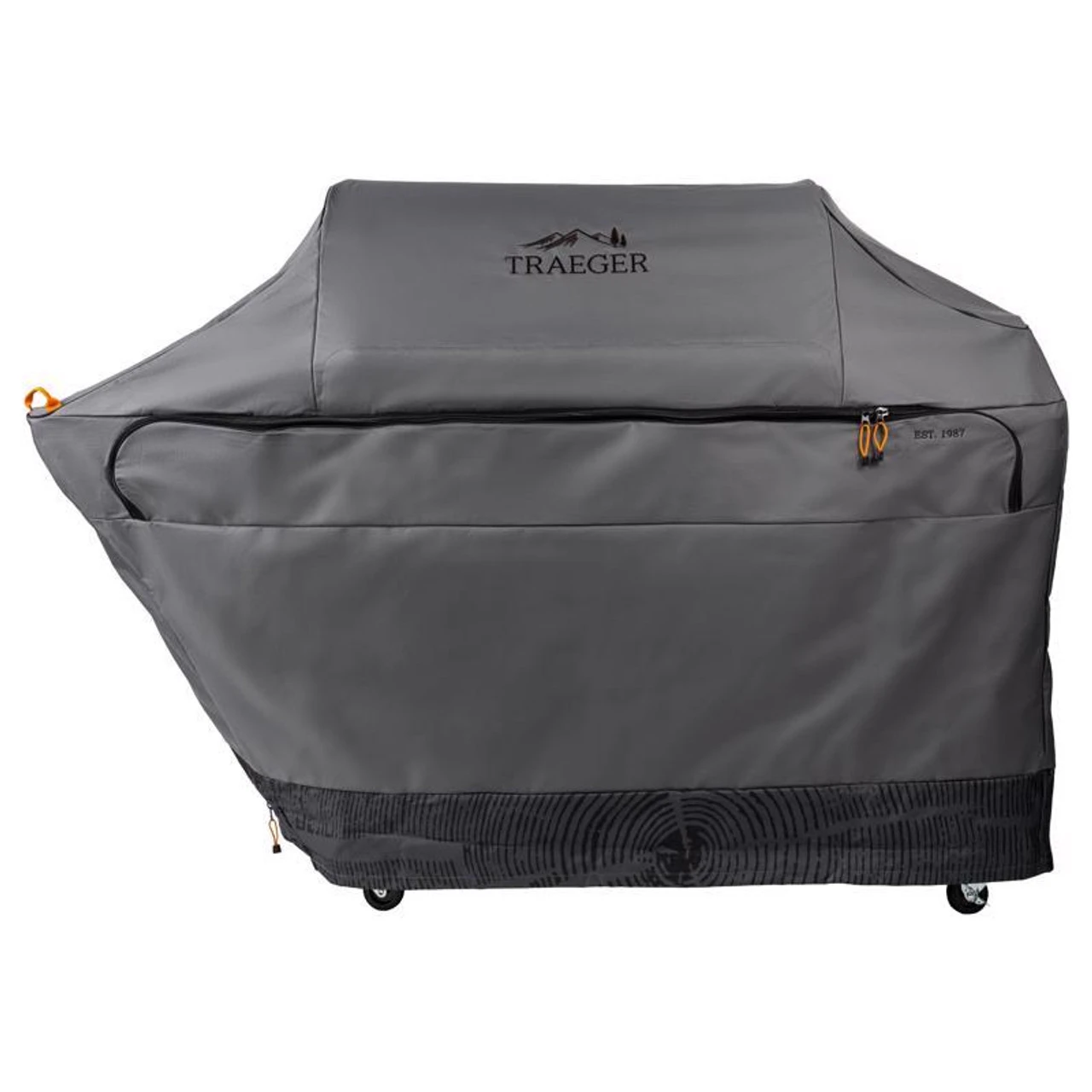 Shield your Traeger Timberline XL wood pellet grill from the elements all year long with this full-length grill cover. Heavy-duty, all-weather material protects against the harshest conditions and an expansion panel zips open to fit all of your P.A.L. Pop-And-Lock Accessory Rail attachments.