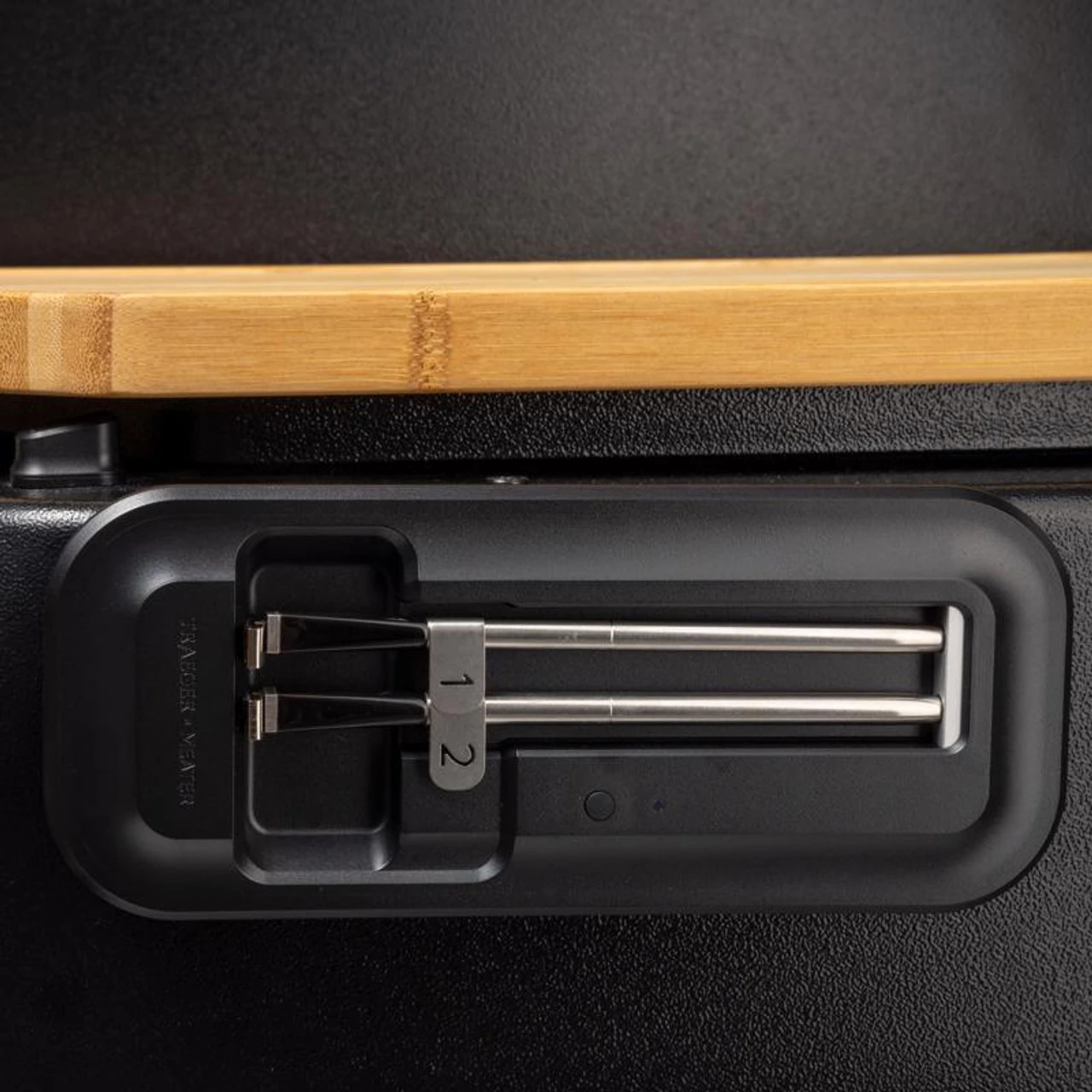 Cook with no strings attached using the Traeger x Meater Wireless Meat Thermometer 2-Pack. Designed exclusively for Traeger’s new touchscreen display-equipped grills, these truly wireless meat thermometers let you monitor your food from anywhere without lifting the lid so you get perfect results every time. Bluetooth technology links the thermometer to your grill’s Wifire. Completely wireless design offers uncluttered convenience that lets you flip and move food around without worrying about getting your wires crossed.