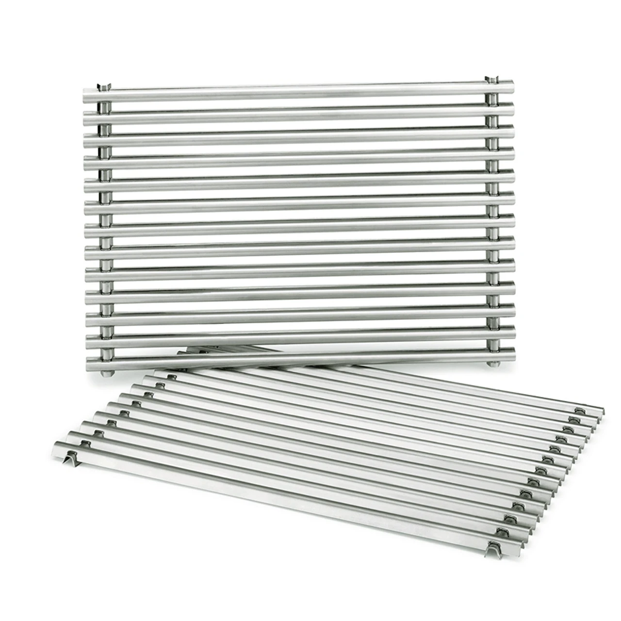 Replacement set of stainless steel cooking grates for Weber Summit Gold gas grills. Dimensions: 0.5″H x 8.2″W x 17.3″D (2) & 0.5″H x 11.8″W x 17.3″D (1)