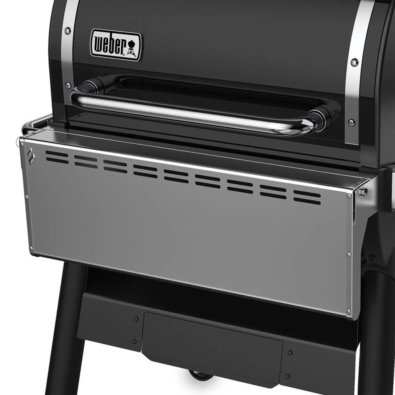 The stainless steel front shelf adds over 250 square inches of extra work space. It accommodates up to 20 lbs of food and BBQ necessities including tools, platters and cutting boards. The clips underneath are specifically designed to hold the upper cooking rack when not in use.