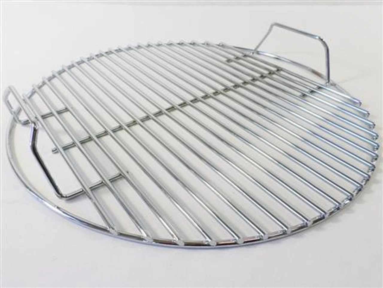 Chrome plated steel “UPPER” cooking grate for 14″ Smokey Mountain Cooker. Actual diameter measures 13-1/2″. Features 2 handles for easy placement and removal.