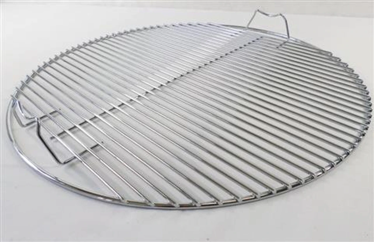 Chrome plated steel lower cooking grate for Weber 22.5″ Smokey Mountain Cooker. Actual diameter of the grate measures 20-3/4″. Features 2 handles for easy installation and removal.