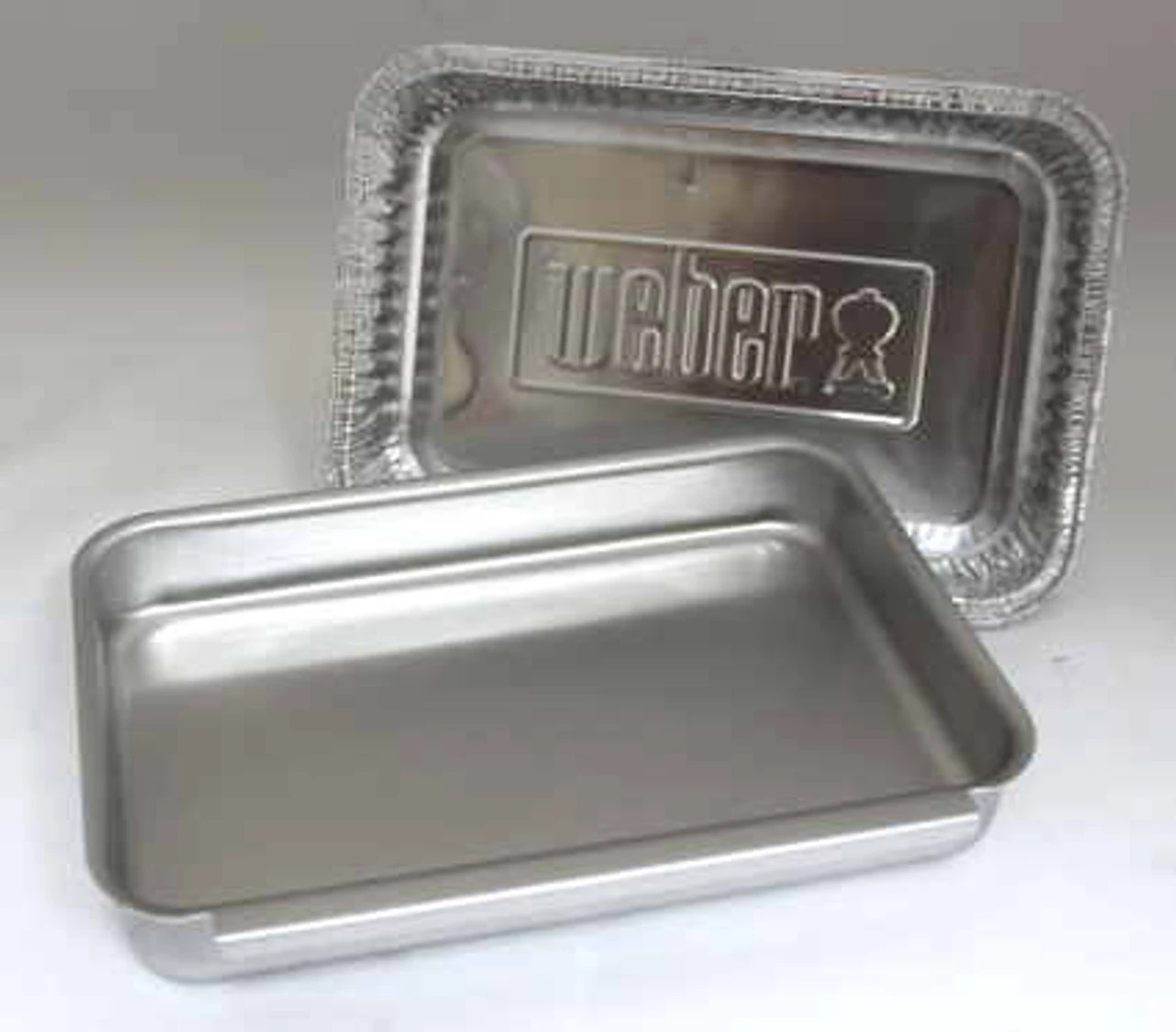 Aluminum grease catch pan with one single disposable foil liner. Pan measures 8-5/8″ long X 6-1/8″ wide (width measurement includes the folded side rail extension). Designed to hold disposable 6″ X 8-1/2″ foil pan liner, which is available in a pack of 10, see Weber part 6415.