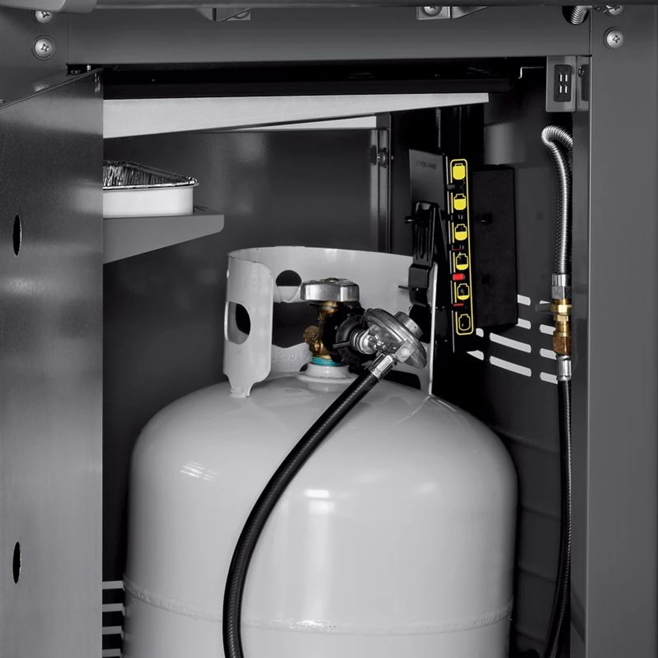 Porcelain-enameled lid with center-mounted thermometer and painted aluminum end caps